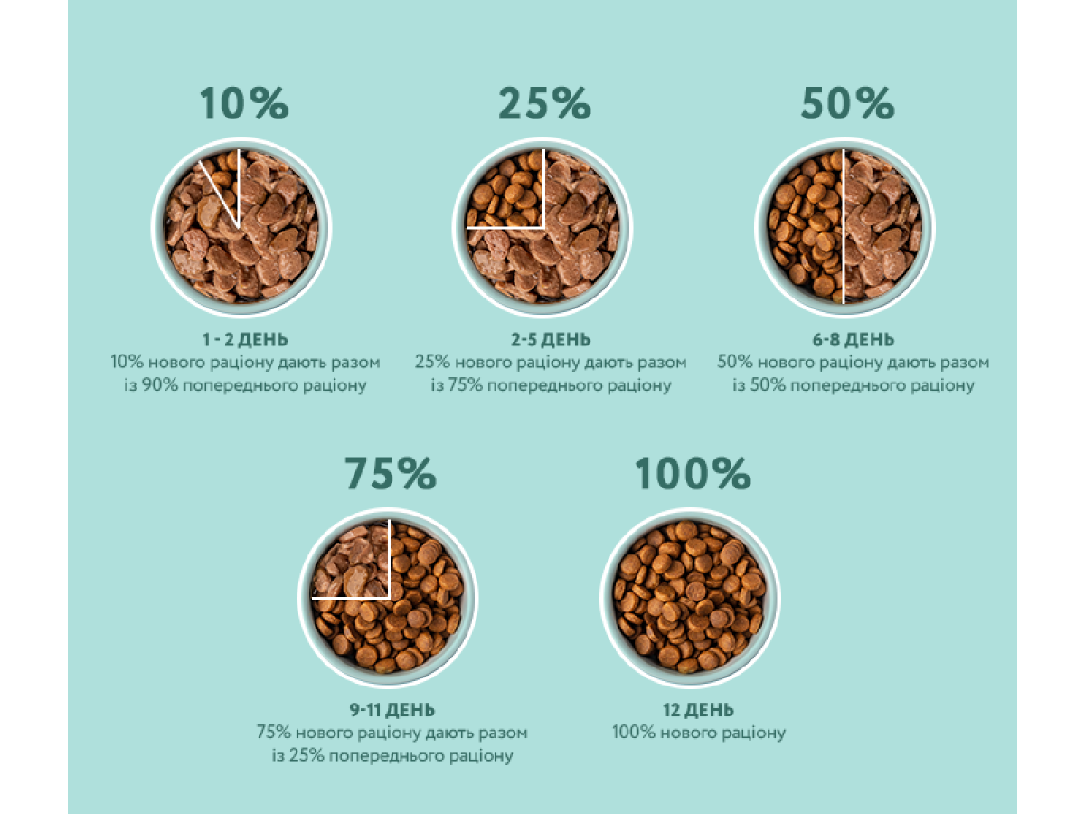 - День 10 и далее: 100% новый корм.